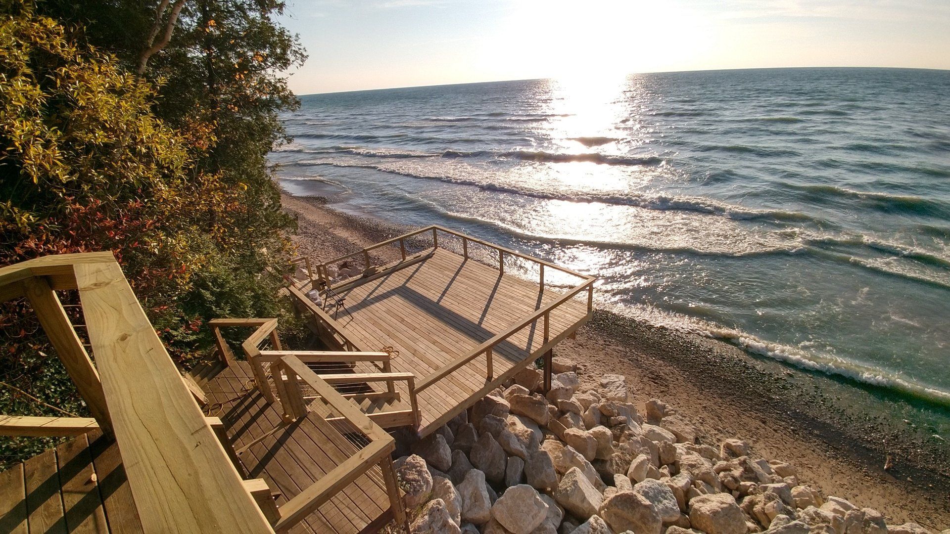 Private Beach stairs allow you to access the water at your convenience and add to your properties Lakeshore value!
