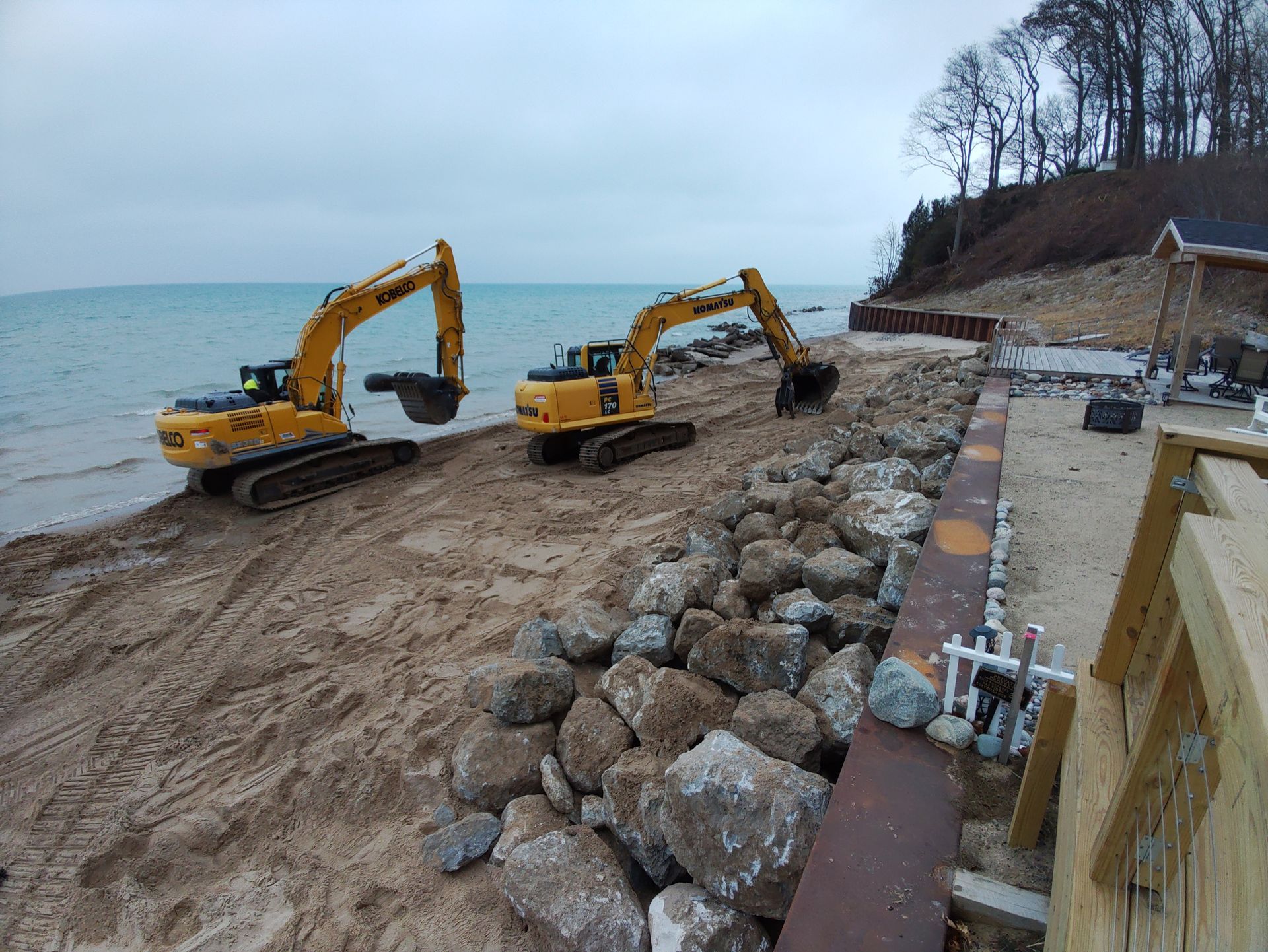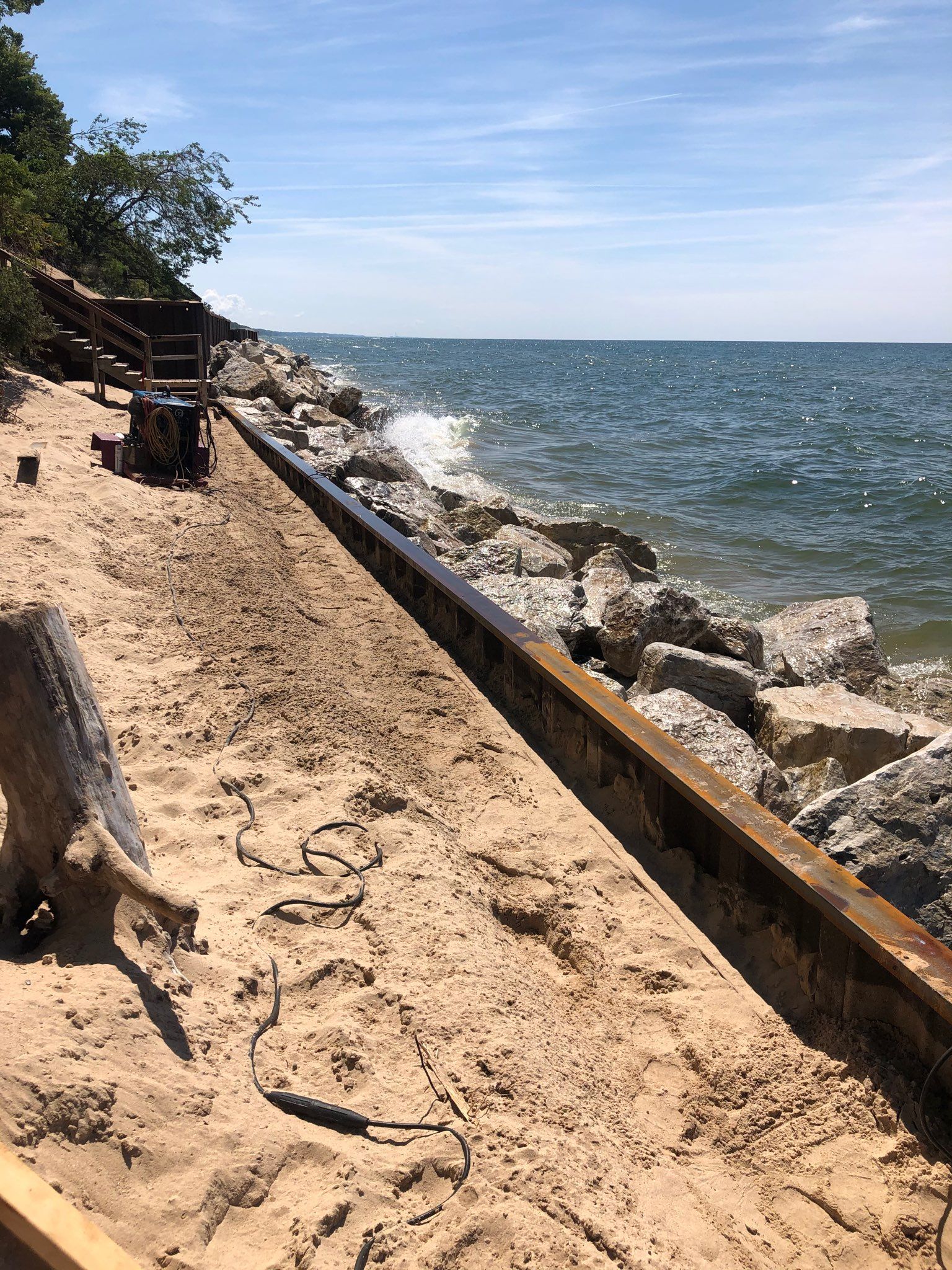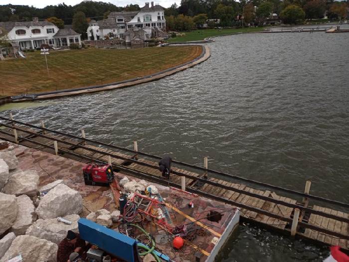 Sea Wall Installation and Repair can be accessed and completed by our barge services to avoid disturbing your property by land.